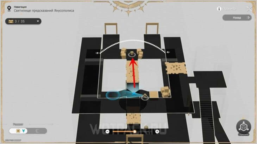 Erreichen Sie den verborgenen Schatz im Heiligtum von Janusopolis.