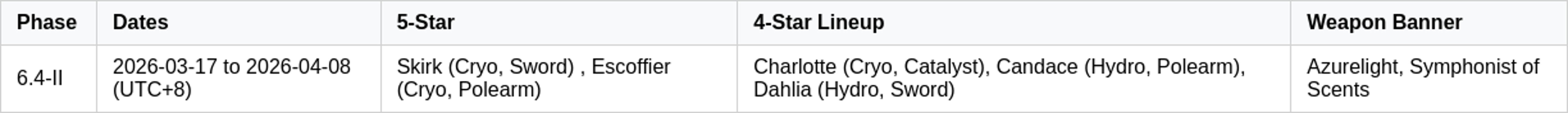 This banner phase highlights the return of key Cryo characters such as Skirk and Escoffier, making it a valuable opportunity for those invested in freeze compositions or who have missed important Cryo supports in the past.