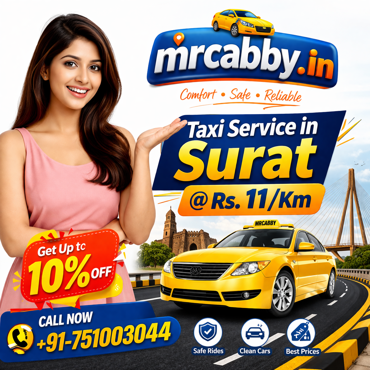 Our Taxi Service in Surat starts at just Rs. 11/km, making it one of the most affordable options for local and outstation travel.